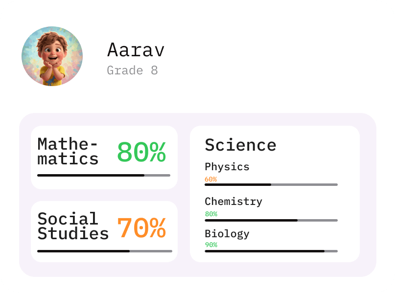 A centralized dashboard to monitor subject-wise performance.